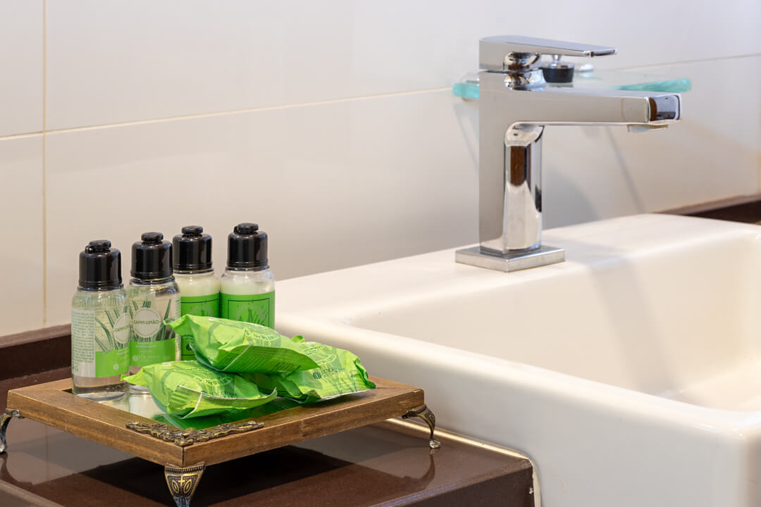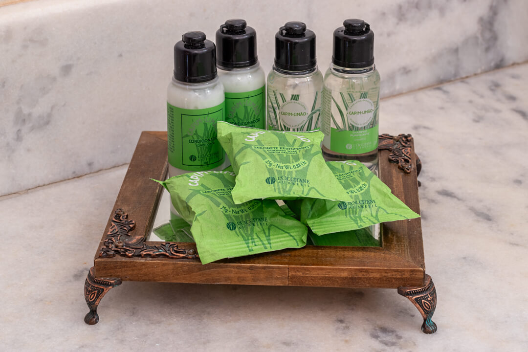 Todas seguem o mesmo padrão de conforto contendo: rouparia de algodão, amenities, TV LCD com SKY, frigobar, ar condicionado, cofre digital, telefone, secador de cabelo e WI-FI.