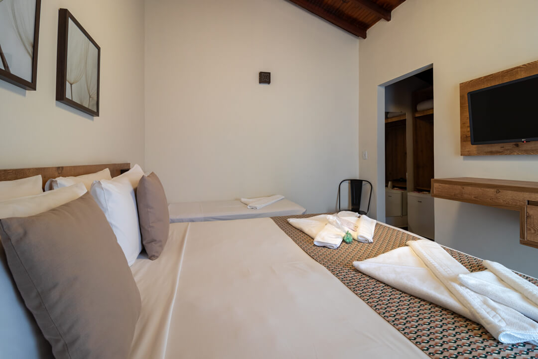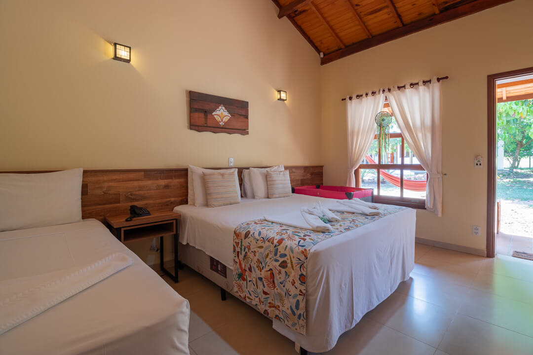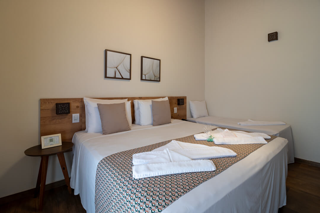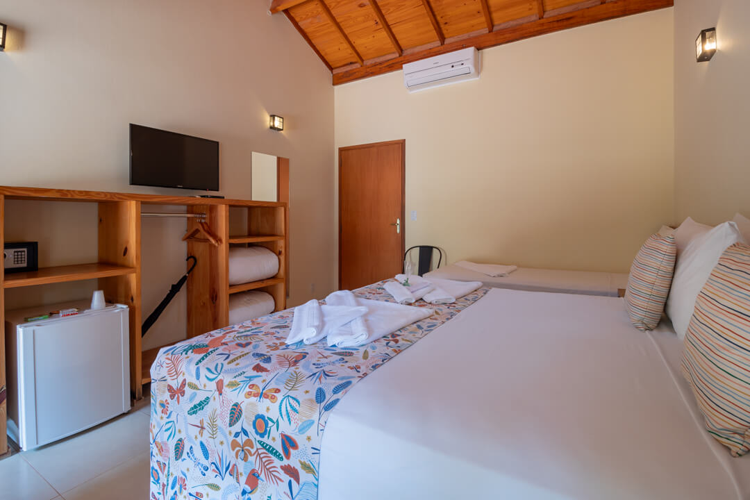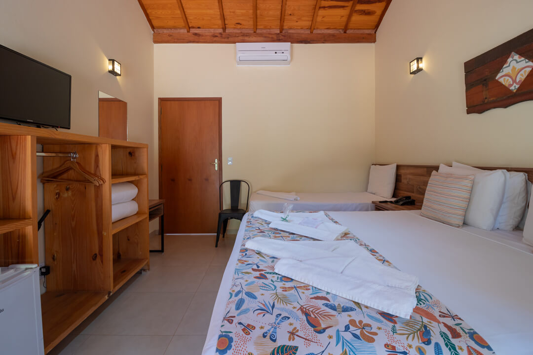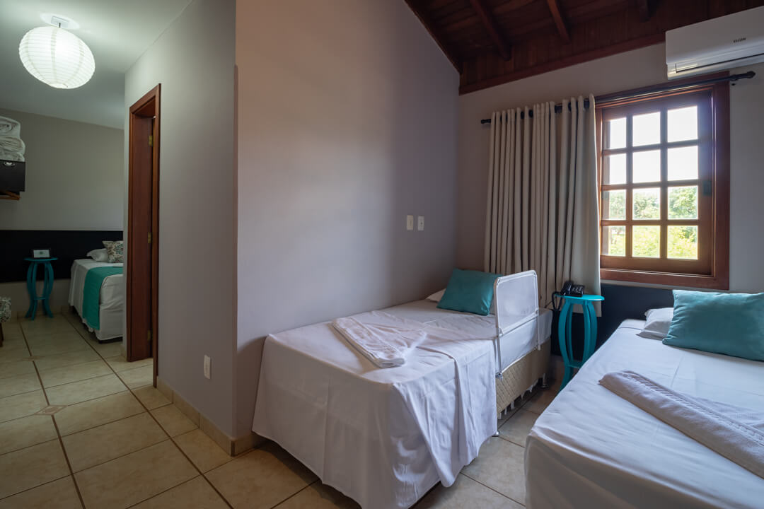 As suítes mais novas da Pousada contam com um ambiente mais privativo para até 3 pessoas, ideal para descansar e aproveitar de maneira exclusiva.
