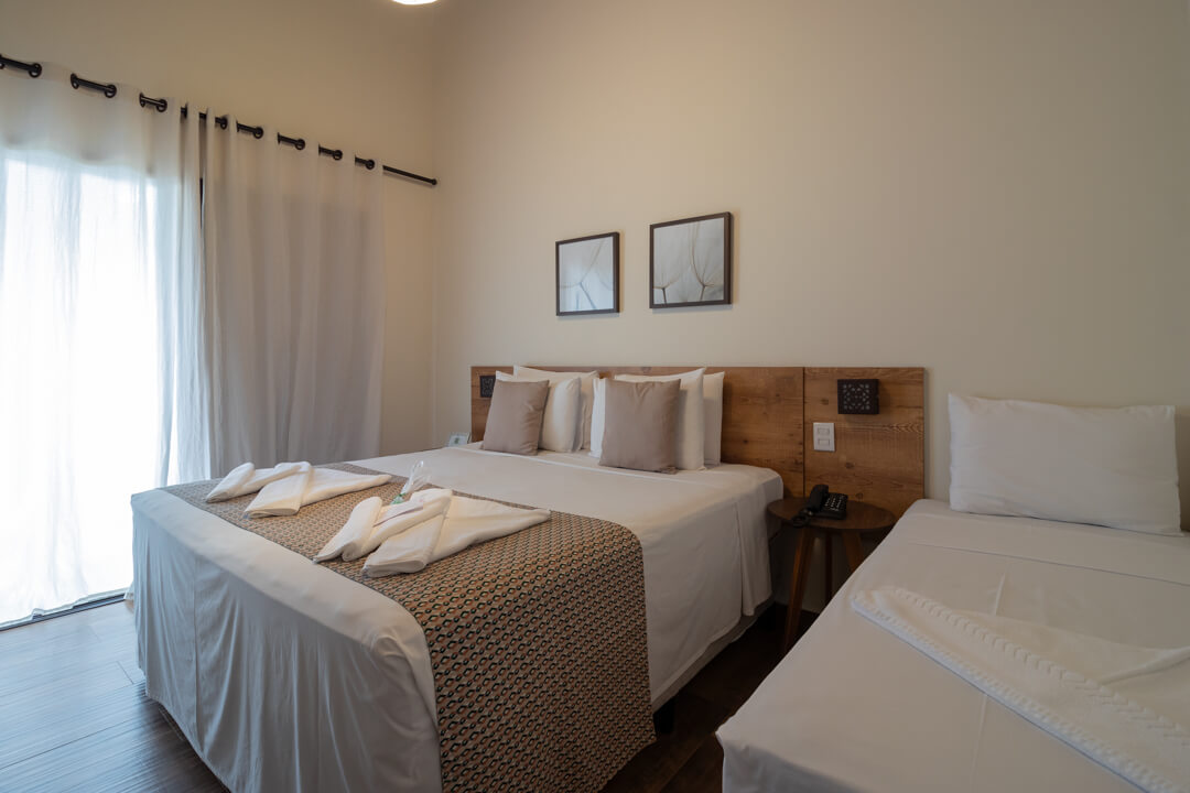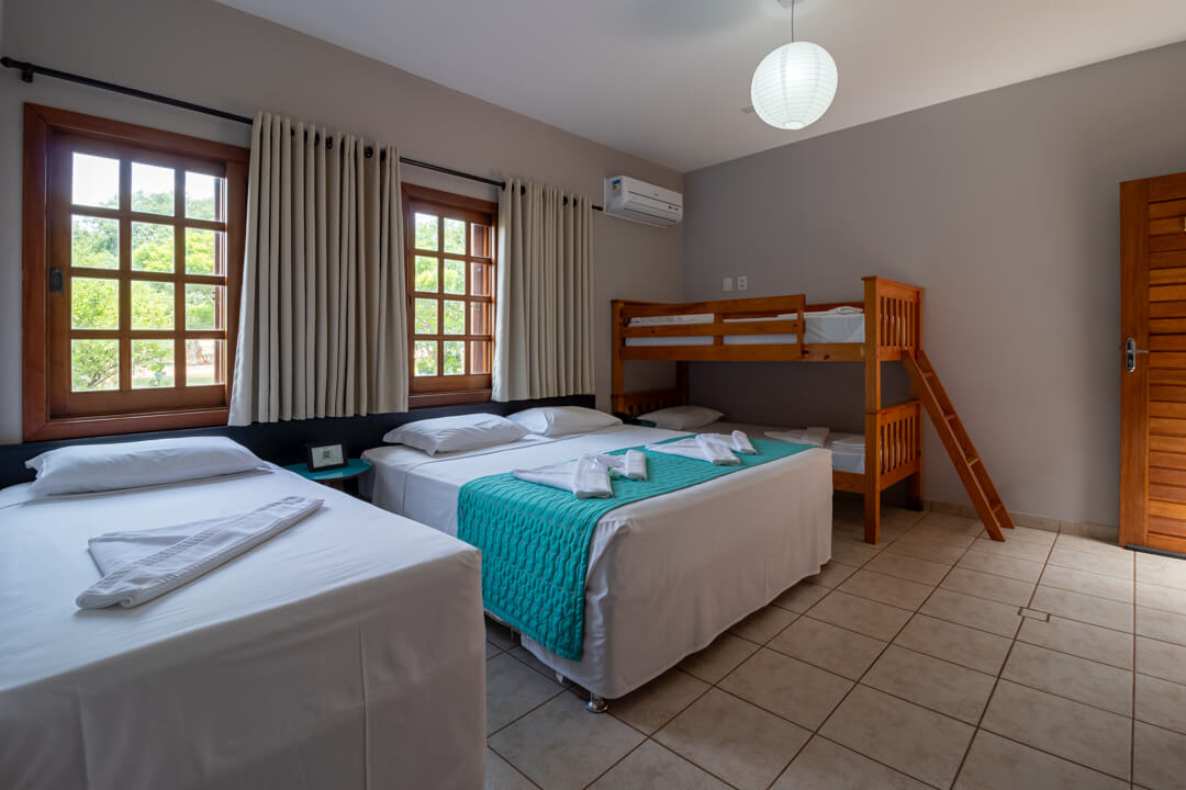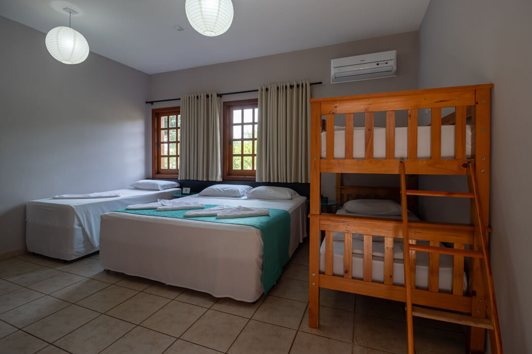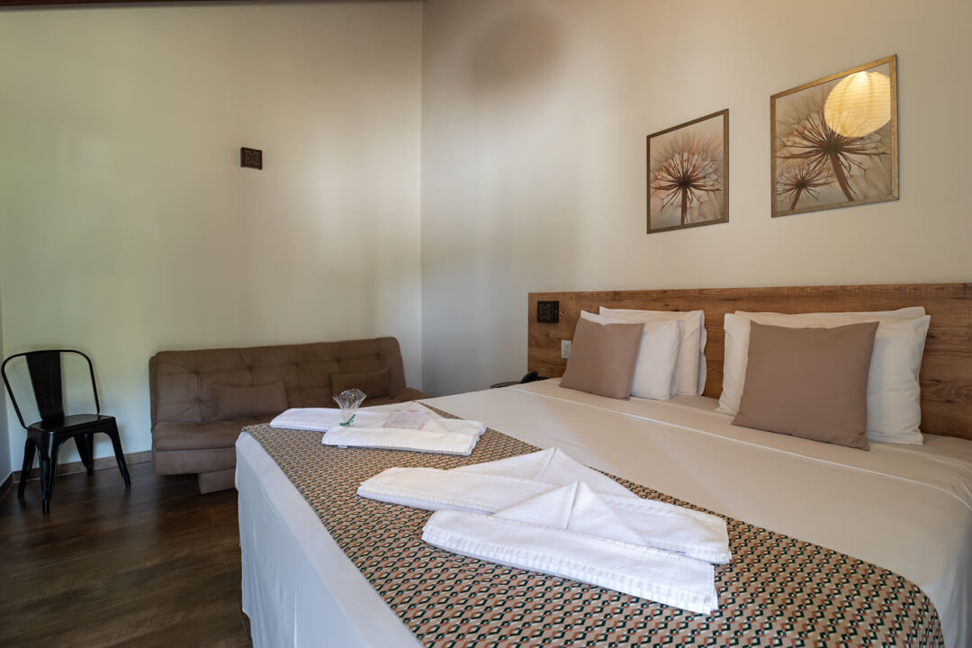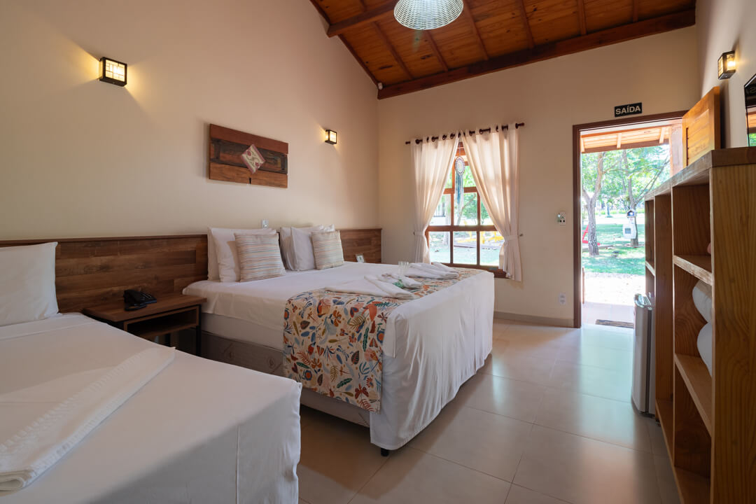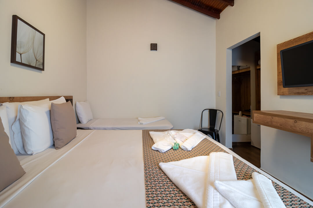 As suítes mais novas da Pousada contam com um ambiente mais privativo para até 3 pessoas, ideal para descansar e aproveitar de maneira exclusiva.
