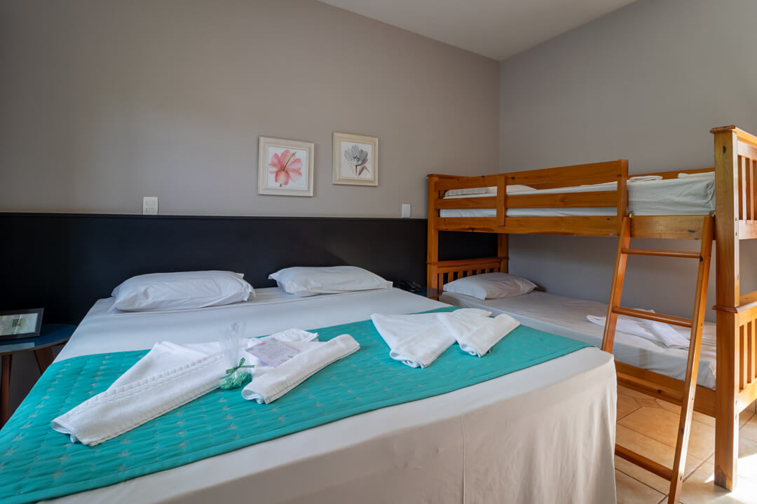 Acomodação funcional e confortável, com ótimo custo-benefício para até 5 pessoas. Localizada no prédio principal, juntamente com a recepção.
